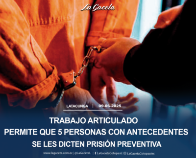 Trabajo articulado permite que 5 personas con antecedentes se les dicten prisión preventiva