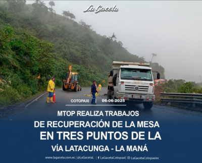 MTOP realiza trabajos de recuperación de la mesa en tres puntos de la vía Latacunga – La Maná
