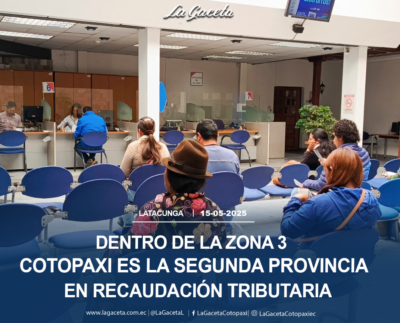 Dentro de la Zona 3, Cotopaxi es la segunda provincia en recaudación tributaria