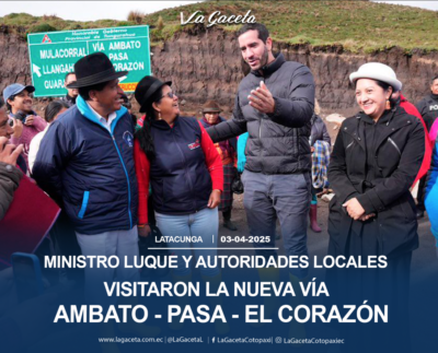 Ministro Roberto Luque y autoridades locales visitaron la nueva vía Ambato – Pasa – El Corazón