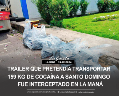 Tráiler que pretendía transportar 159 kg de cocaína a Santo Domingo, fue interceptado en La Maná