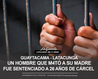 Guaytacama – Latacunga Un hombre que m4tó a su madre fue sentenciado a 26 años de cárcel