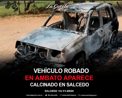 Vehículo robado en Ambato aparece calcinado en Salcedo