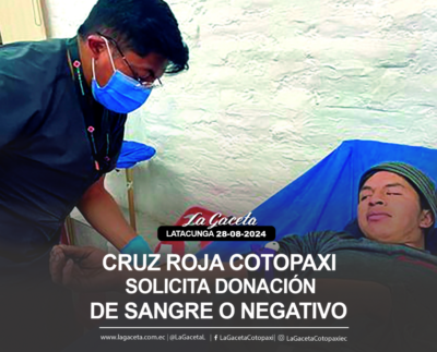 Cruz Roja Cotopaxi solicita donación de sangre tipo O negativo