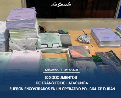 500 documentos de tránsito de Latacunga fueron encontrados en un operativo policial de Durán, Guayas