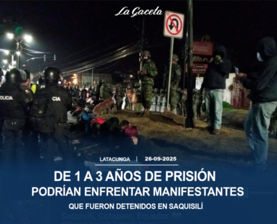 De 1 a 3 años de prisión Podrían enfrentar manifestantes que fueron detenidos en Saquisilí