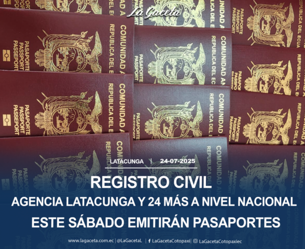 Este sábado 26 de julio, el Registro Civil a nivel nacional a través de 25 agencias realizará la jornada extraordinaria de entrega de pasaportes, el trabajo se cumplirá en 25…