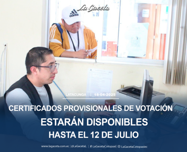 La Delegación Electoral de Cotopaxi, luego de los comicios del 13 de abril, emite certificados de votación provisional por 90 días, desde el 14 de abril hasta el 12 de…
