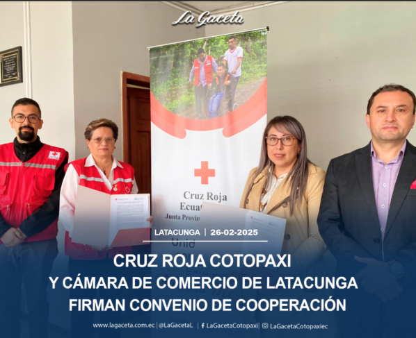 Cruz Roja Ecuatoriana Junta Provincial de Cotopaxi y la Cámara de Comercio de Latacunga firmaron convenio de cooperación interinstitucional con el objetivo de fortalecer acciones conjuntas en salud, bienestar y…