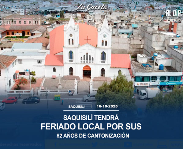 Este sábado 18 de octubre, Saquisilí cumple 82 años de cantonización, en ese marco, el feriado local se trasladó al viernes tal y cual como dispone la Ley. El documento…